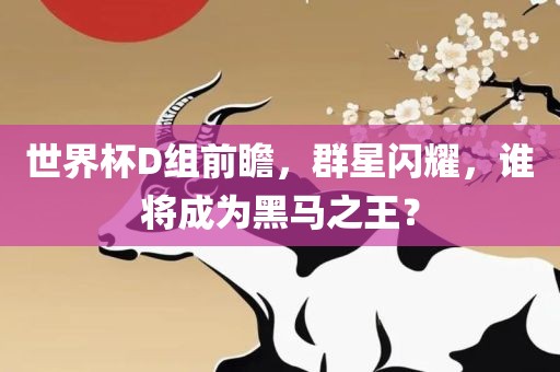 世界杯D组前瞻充满了无限可能,各支球队实力均衡,竞争激烈,明星球员的表现、战术打法和小组赛对手等因素都将影响比赛的走向,让我们共同期待世界杯D组的比赛,见证谁将成为黑马之王!