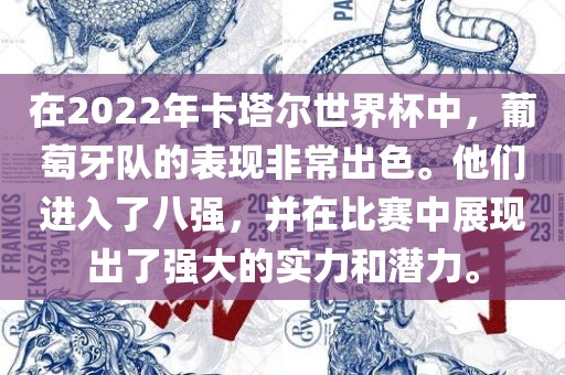在2022年卡塔尔世界杯中,葡萄牙队的表现非常出色。他们进入了八强,并在比赛中展现出了强大的实力和潜力。